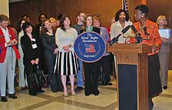 Currently, ERA legislation has been introduced in both the House and the Senate. Please click here to read the text of this legislation. Sen. Gwen Margolis introduced Senate Bill 94, which is currently referenced to two committees: the Senate Judiciary (where it passed, bipartisan 6-3 in 2003) and the Rules and Calendar committee. Rep. Arthenia Joyner introduced House Bill 203, which is identical in text to House Bill 94. HCR 203 has been referenced to four committees: House Judiciary; Fiscal Council; Rules and Calendar Council; and Justice Council.